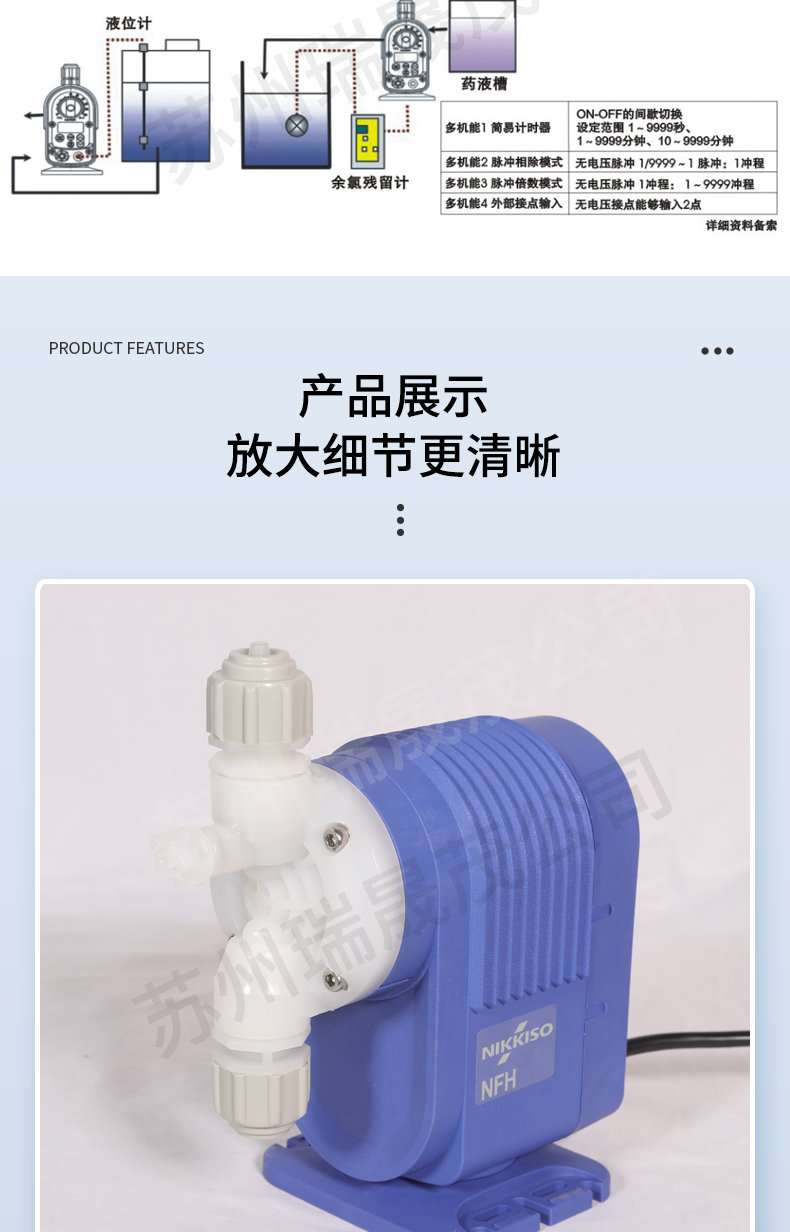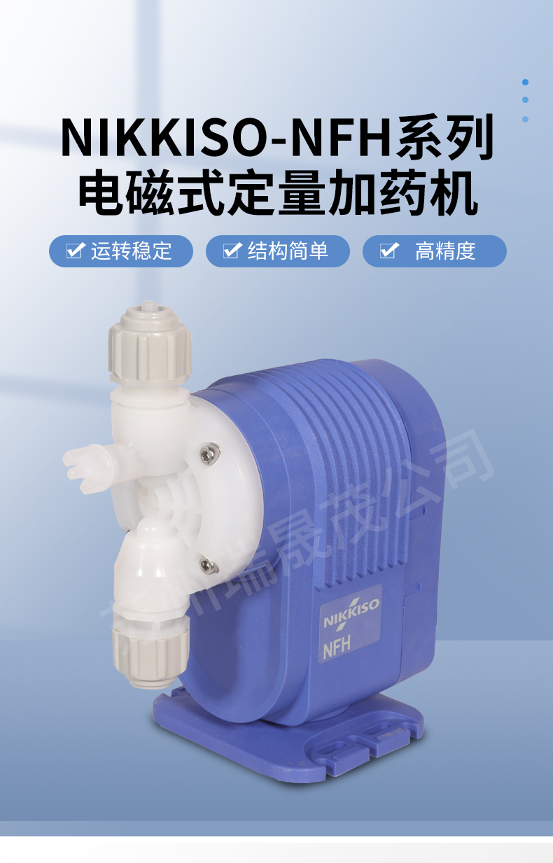 NIKKISO EIKO結合電子與定量加藥機之技術,研發泛用性的電磁式加藥機,液體接觸部以優質之耐蝕材質為標準,外型精致,