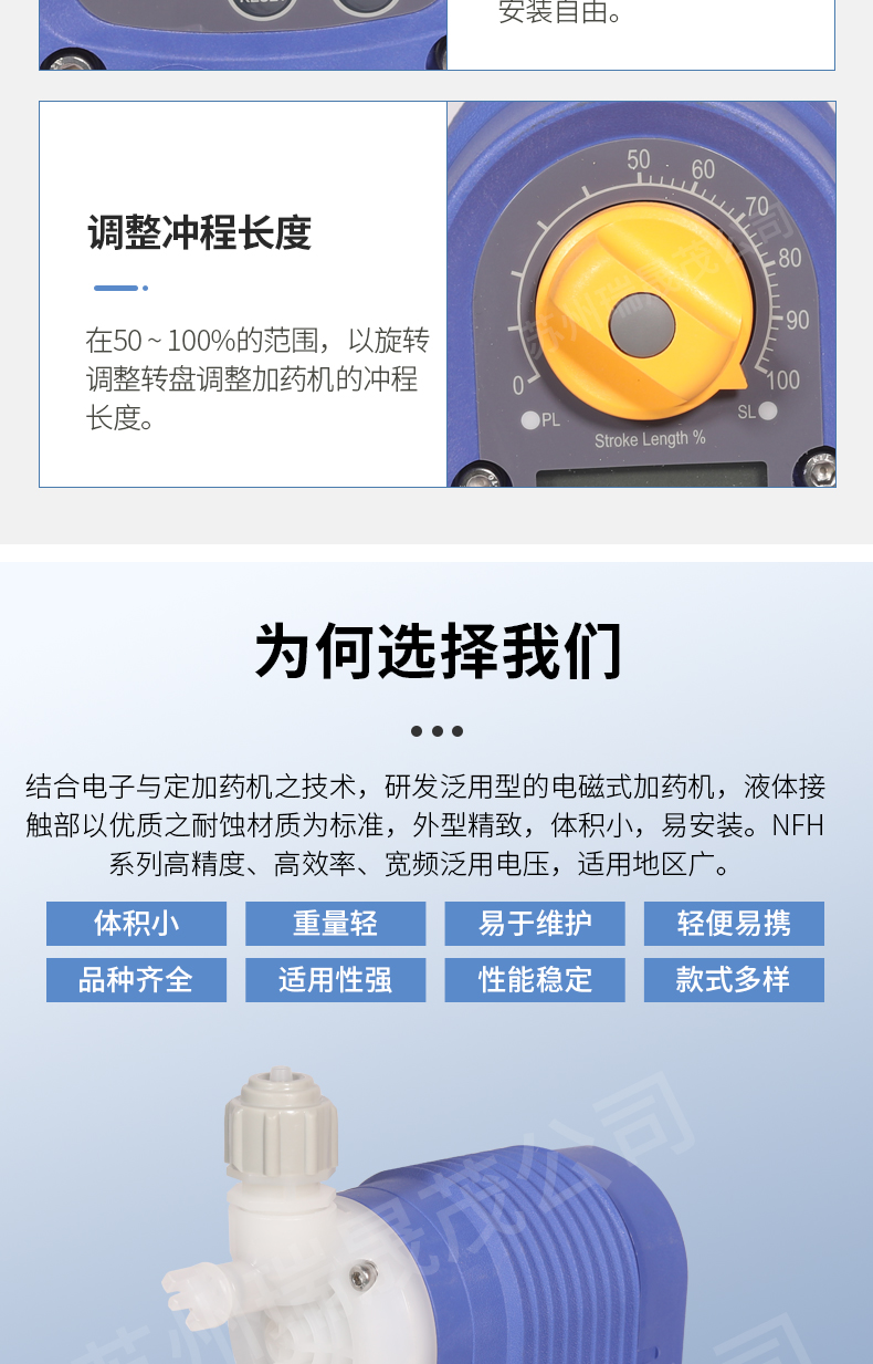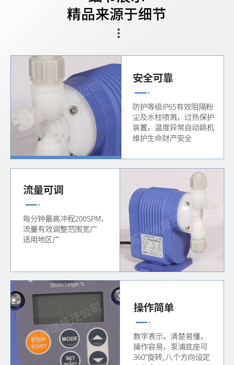 4、每分鐘最高沖程200SPM,沖程長度、沖程頻率雙流量調整方式,流量有效范圍寬廣