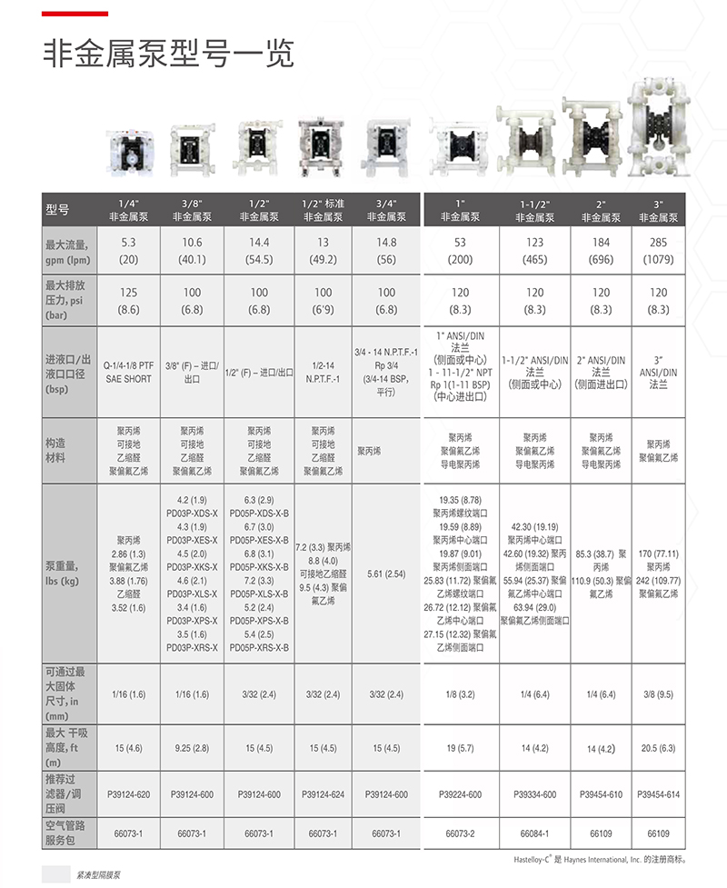 EXP氣動隔膜泵非金屬型泵型號大全: