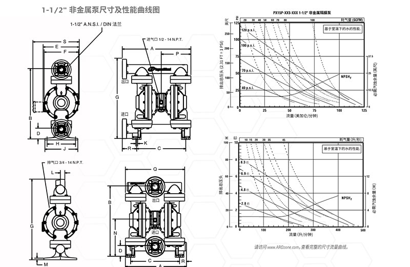 產品型號說明:PX15X-XXS-XXX-B-XX主要參數:1:1比率最大流量:465LPM進氣口(內螺紋):1/2”流體進口:1.5“,法蘭(側面或中間)流體···