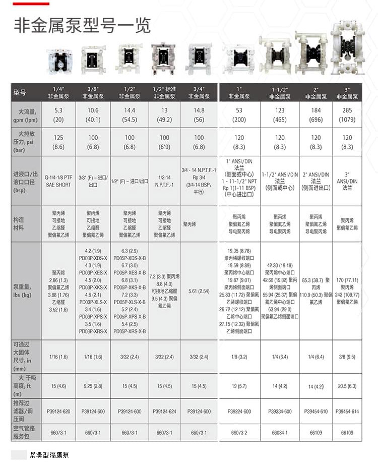 ARO氣動隔膜泵非金屬型泵型號大全: